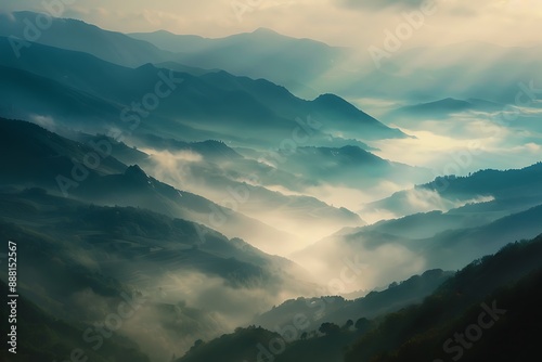 © AhmadTriwahyuutomo, Fototapeta premium Misty Mountain Landscape