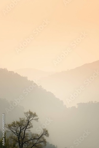 Fototapeta premium Misty Mountain Landscape: A Serene Sunrise Painting