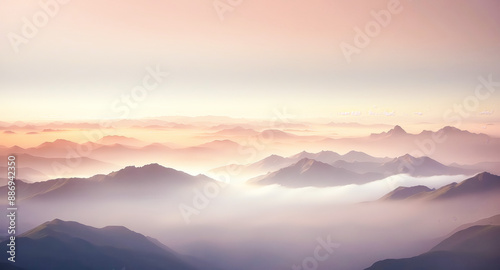 © Rysak, Fototapeta premium Misty Mountain Landscape at Sunset