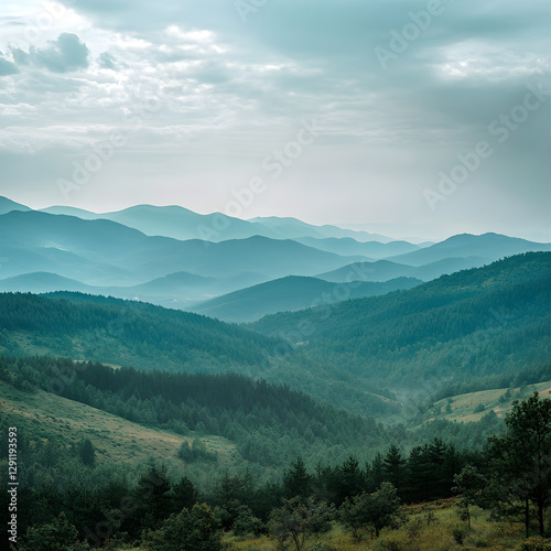 © Bisma Rajpoot, Fototapeta premium Misty Mountain Landscape Photography