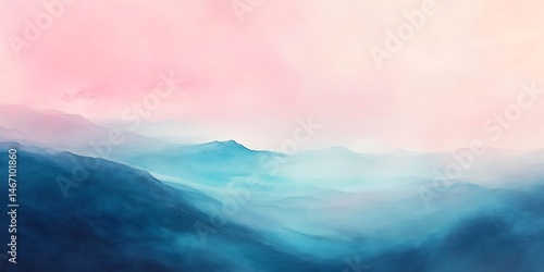 © Asim, Fototapeta premium Misty Mountain Landscape Pink and Blue Dreamy Scenery