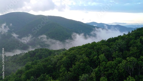 © Md Ikbal, Fototapeta premium Misty Mountain Landscape: Serene Valley View
