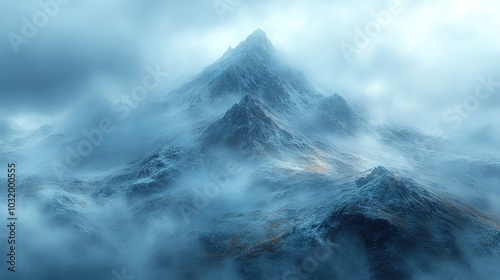 © drizzlingstarsstudio, Fototapeta premium Misty Mountain Landscape with Layered Ridges and Valleys