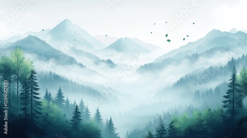 © AudaX, Obraz premium Misty mountain landscape with pine trees