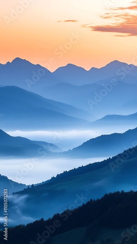 © Kira, Fototapeta premium Misty Mountain Majesty at Sunrise: A Serene Landscape
