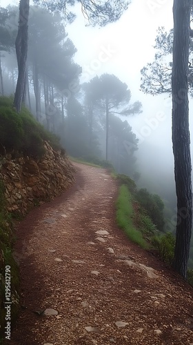Fototapeta premium Misty mountain path, winding trail