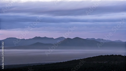 © Danyil, Obraz premium Misty Mountain Range at Dawn