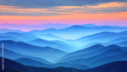 © Vava, Fototapeta premium Misty mountain range at dawn