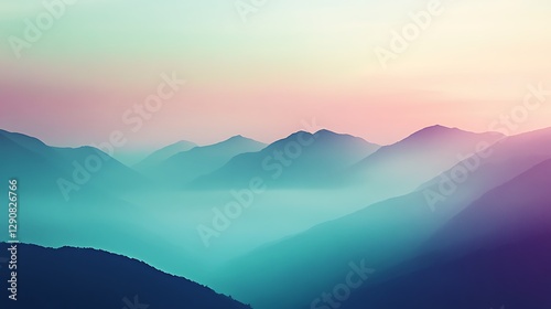 Fototapeta premium Misty mountain range at sunrise, pastel colors