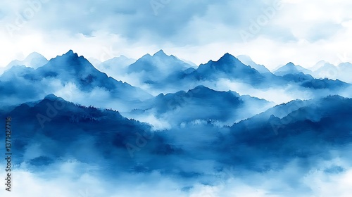 Obraz premium Misty Mountain Range Landscape (1)