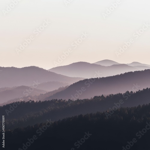 © Younes, Obraz premium Misty Mountain Range Silhouette