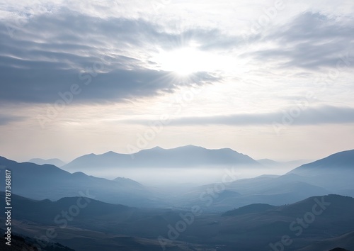 © Surung, Fototapeta premium Misty mountain range sunrise