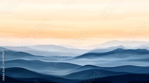 © MASJAB, Obraz premium Misty Mountain Range Sunset.
