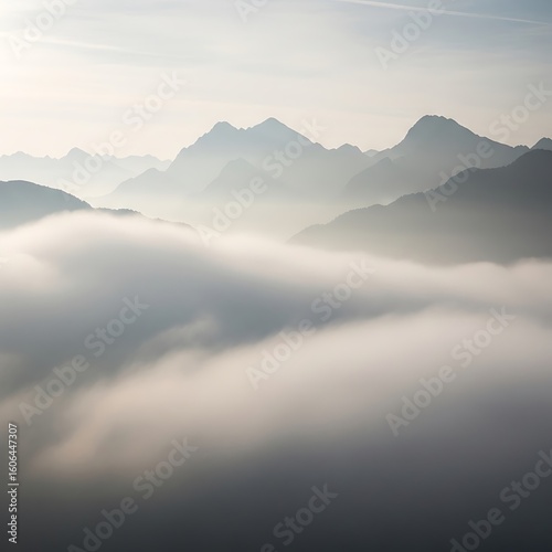 Obraz premium Misty mountain range veiled in soft clouds.