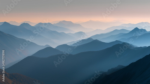 © Catifo, Fototapeta premium Misty mountain range view nature photography landscape early morning tranquil atmosphere