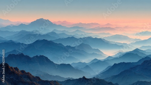 © Maulzz, Fototapeta premium Misty mountain ranges at dawn