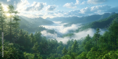© Miki, Naklejka premium Misty Mountain Sunrise