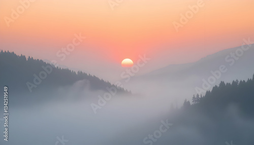 Fototapeta premium Misty Mountain Sunrise Peaceful Scenic Landscape Nature Photography