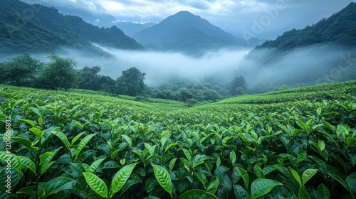 Fototapeta premium Misty Mountain Tea Plantation Sunrise (4)