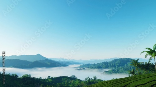 © ahmad, Obraz premium Misty Mountain Valley at Sunrise