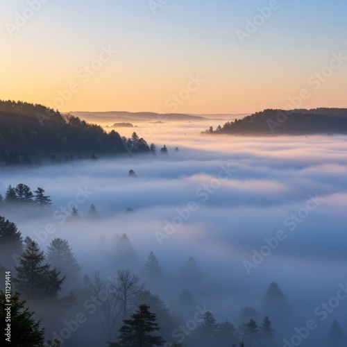© Arcadia, Fototapeta premium Misty Mountain Valley Sunrise Landscape