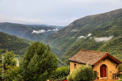 © Tupungato, Fototapeta premium Misty mountain view in Pyrenees, Spain