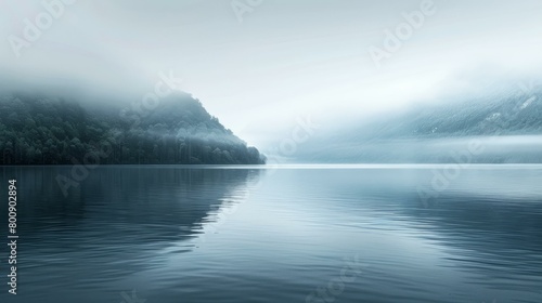Fototapeta premium Misty Mountains and Foggy Lake Landscape