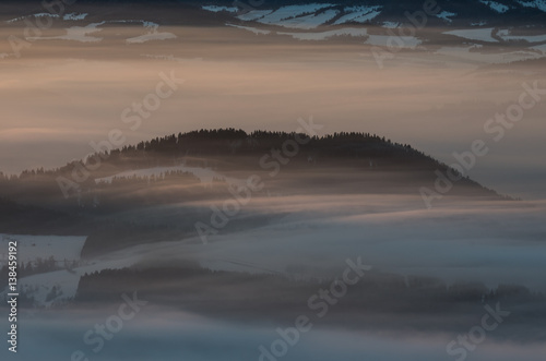 Fototapeta premium Misty mountains landscape in the morning, Poland