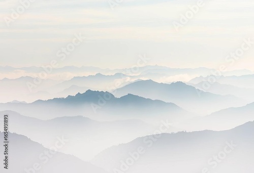 Fototapeta premium Misty mountains, pale ink washes, soft gradient sky, ethereal feel, airy,...