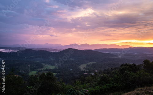 © explorewithinfo, Obraz premium Misty mountains range with amazing sky