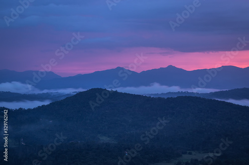 Fototapeta premium Misty mountains range with amazing sky