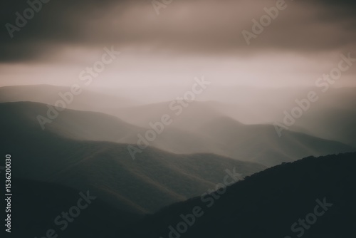 © runi, Obraz premium Misty mountains shrouded in muted light