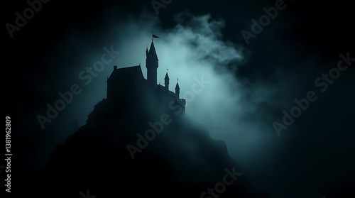 © kaling, Fototapeta premium Misty Night Castle Silhouette