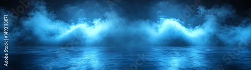 © vivi, Obraz premium Misty night scene with blue light reflections