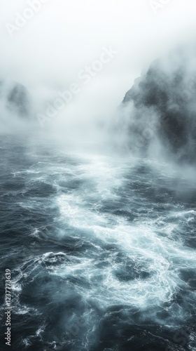 © tydeline, Fototapeta premium Misty Ocean, Rugged Coastline, Dramatic Seascape