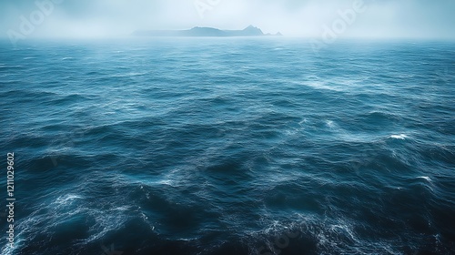 Fototapeta premium Misty Ocean Scene Distant Island Silhouette