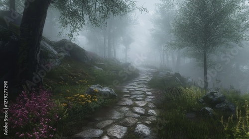 © Kamran, Fototapeta premium misty, path, forest, trail