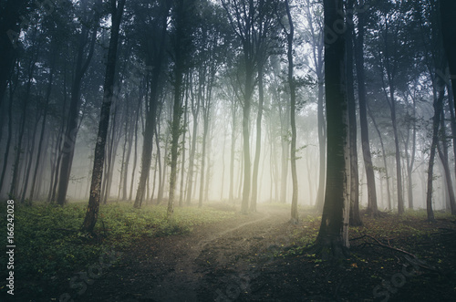 Obraz premium misty path through dark mysterious forest