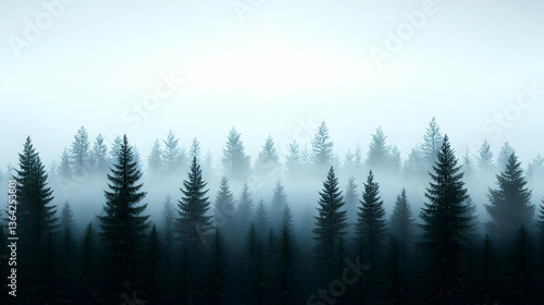 © artzone, Fototapeta premium Misty Pixelated Pine Forest Landscape