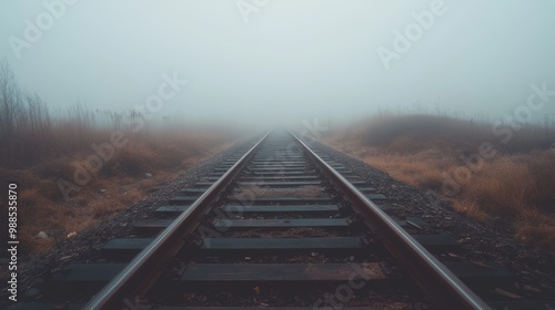 Fototapeta premium Misty Railroad Tracks Leading into the Fog