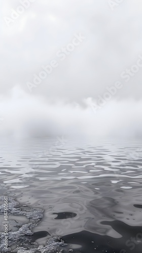 Fototapeta premium Misty Reflection:Ethereal Tranquility of a Mist-Covered Lake's Still Surface