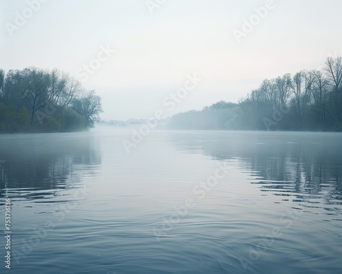 © M, Fototapeta premium Misty River Landscape in Serene Morning Light