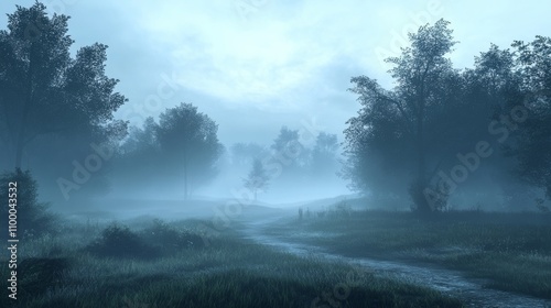 Fototapeta premium Misty River Path Through A Foggy Forest