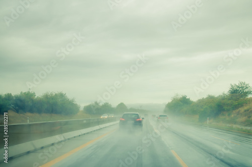 © katarinagondova, Fototapeta premium misty road during rainy day