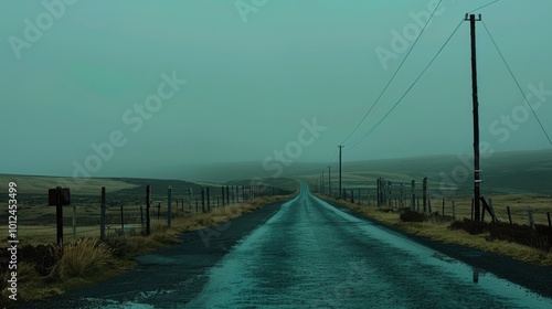 Obraz premium Misty Roadway Through Open Landscape at Dusk