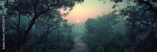 Fototapeta premium Misty Sunrise Forest Path