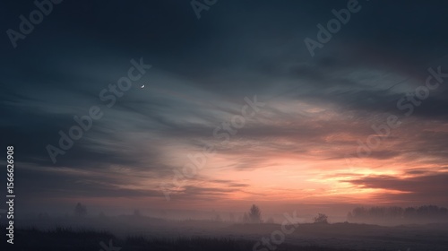 © Zidan, Fototapeta premium Misty sunrise landscape