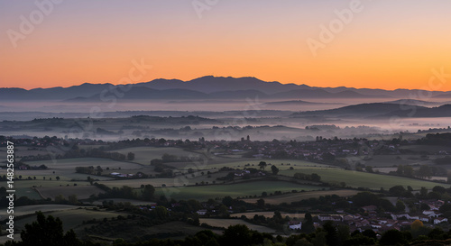 © SHOKAT, Fototapeta premium Misty Sunrise Landscape: Scenic View