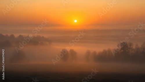© Anim, Fototapeta premium Misty sunrise over a landscape