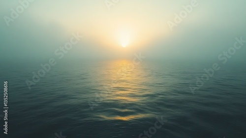 © Art Sof galery photo, Fototapeta premium Misty sunrise over calm ocean water.